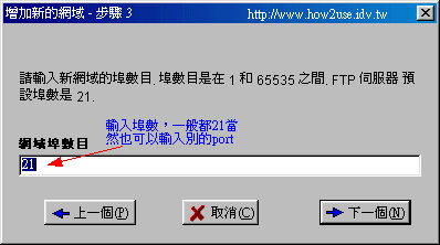 3.接著輸入你的FTP站名,不一定要網域名稱也可以。