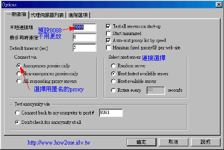 3. Proxy的載入:你可以到 http://www.multiproxy.org/all_list.htm 它有很多Proxy 的列表可以讓你選擇