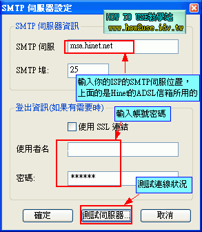 6.你也可以用有寄信伺服的SMTP主機來將檔案傳到信箱,不過用[直接傳送]速度會比較快