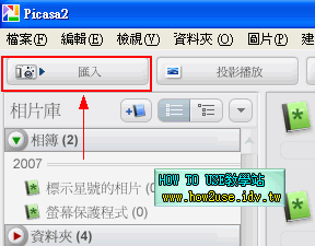 接著再將相簿加入,有兩種方式[匯入]和[新增],匯入會將圖片複製到另一個資料夾,新增則是將原本的資料夾加入